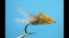 C-13 (Cicada-13) Hook: Dry fly hook, #4-14 (#10 used in the video), Thread: Gudebrod 8/0, green, Tail: Krystal flash, opal - short, Abdomen: Fox squirrel, dyed olive; SLF Prism, peacock - mixed (or