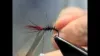 Hook: Grip 14723BL #14, Thread: Benecchi 12/0, black, Hackle: Whiting Popper Pack barbs, red center, Rib: Flash, fine, red, Body: Seal's fur, black