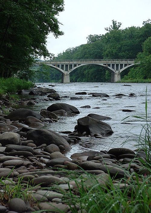 This past weekend, I fished Esopus Creek from aways downstream back up to the Five Arches Bridge. The rainbows might not grow as large as their cousins out west, but they pull good and hard and make a good show of themselves. The river is beautiful, especially on one of those low cloud days like we had on Saturday. Seemed I could scrape the bottom of the clouds with my rod tip if I got on my tip toes.