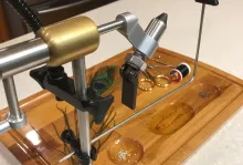 When I look out over my tying table, I see an even layer of tools and materials. I have never owned a tool holder, and most of the time my tools just lay on the table wherever there's space, which is over and under assorted pelts, feathers, glues, bags and other tools.