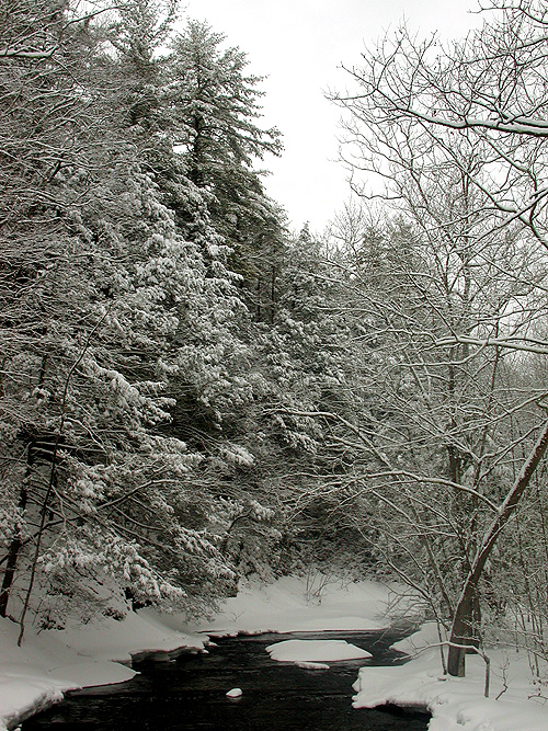 Hi Frederick. We got quite a bit of snow last week, and a fresh topping on Monday when I snapped that pic. It was one of those perfect days for snow pictures - a sticky fluffy snow and no wind to speak of. That creek is about a mile and a half from my house, so I took a walk at lunch on Monday and snapped a few pics along the way. This one is my favorite.