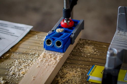 Pocket holes are drilled in the vertical colums to attach to the base.