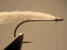 A summer variation of the Surf Candy, to be used when there are lots of baitfish around, could be an almost translucent fly with just 1-2 straws of flash.