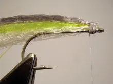 Top wing Chartreuse Ultra Hair or Super Hair topped with dark grey, black or olive Ultra Hair or Super Hair.