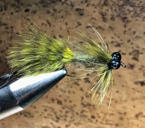 | Tail | Strung Marabou or Grizzly Marabou Olive or Brown |