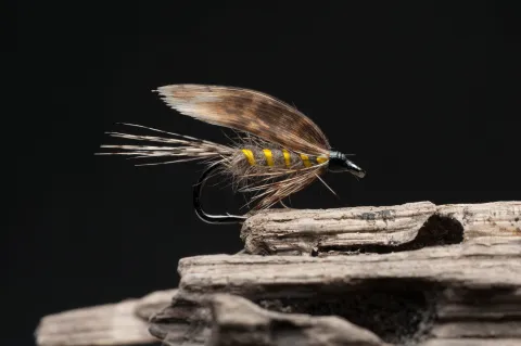 The classical interpretation of the March Brown, with a swept back feather wing. The fly can be varied quite a bit within the scope: Red, tan, burgundy or yellow tying thread giving a different color head. Gold or silver ribbing - or some other color of your choice. Various feathers for the wing.