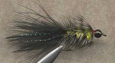 Tail Black Marabou and a few whisps of pearl krystal flash