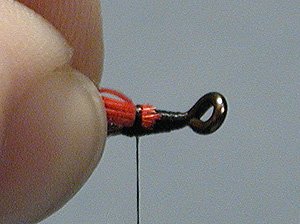 When using metal tinsel, it is best to trim the tie-in end of the tinsel to a sharp point, to reduce the "hump" that can form with the first turn.