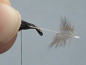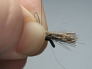 TYING TIP: When you are ready to apply tension, pull *up* on the thread. This will help keep the hairs from rolling off to the far side of the hook.