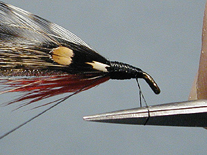 Select a pair of jungle cock eyes for the cheeks. If you don't have real jungle cock eyes, just leave out this step, or build up a bit larger head and paint on some eyes.