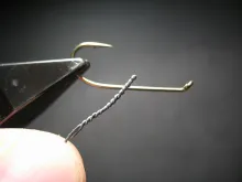 Controlling the antennas whether they are made of Ultra Hair or polar bear, might be easier if you tie them down, where you tie doen the ribbing instead of tying them down at the hook eye.