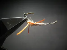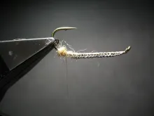 Jesper also ties a light version, where he uses very light colored dubbing as body and Unique fly hair, speckled grizzle as back - however, it is most often the dark one which takes the first place fishing trip after fishing trip.