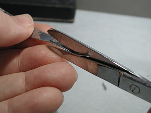 Don't use your favorite delicate scissors to snip off the monofilament. Side trimming pliers would be great, but a heavy duty pair of shears is fine.