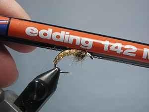 With a bodkin or needle, pick at the thorax to free up some of the guard hairs, offering the illusion of legs.