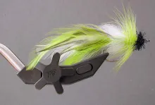 Inspired by some large, colorful saddles and an ordinary feather duster, this pike fly is voluminous and voluptuous, easy to tie and easy to cast.