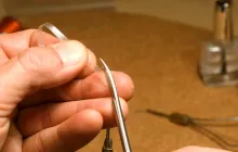 A key to the skinny appearance of this fly is to use half a hackle... and that's not half length, but split down the middle! In reality we don't split it, but just remove the barbs on one side. This makes it much easier to tie in the hackle on the hard and smooth body and also makes the fly a lot less bushy.