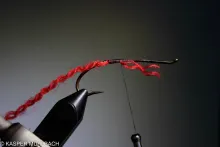 To imitate the bright red legs of the big stone fly it may be even better to use a pheasant body feather dyed hot red.