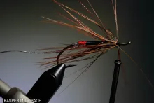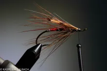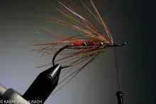 For the clear, peaty water I found the Ullsock to be too dark and gloomy in many cases while the hot-headed orange GP had too much of an effect. I missed a fly right in between, and during the winter of 1982 I tied the Mörrum Fly, which contains elements from both flies.