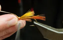 The fly uses feathers from golden pheasant, and reminds me a bit of the Omoe Brush that I tied using yellow golden pheasant feathers in stead of the red ones used by Ken Bonde in his original. That yellow version of his excellent fly has caught me a lot of fish, and the similarities to that fly again gives this one some credit. I even used to tie the yellow Omoe Brush with a roofed hackle technique rather than wrapping it as on the original Brush, so that fly had a pretty large resemblance with the fly at hand. Another fly, which has some similarities to the Talisker Touchdown is the renown Danish sea trout fly Brenda, which I have tied with yellow GP feathers rather than the tan hen feathers prescribed in the pattern description.