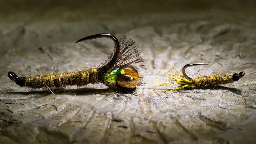 An original 25mm long Headbanger with a 4.6mm tungsten bead (left) and a 10mm Mini Headbanger (right).