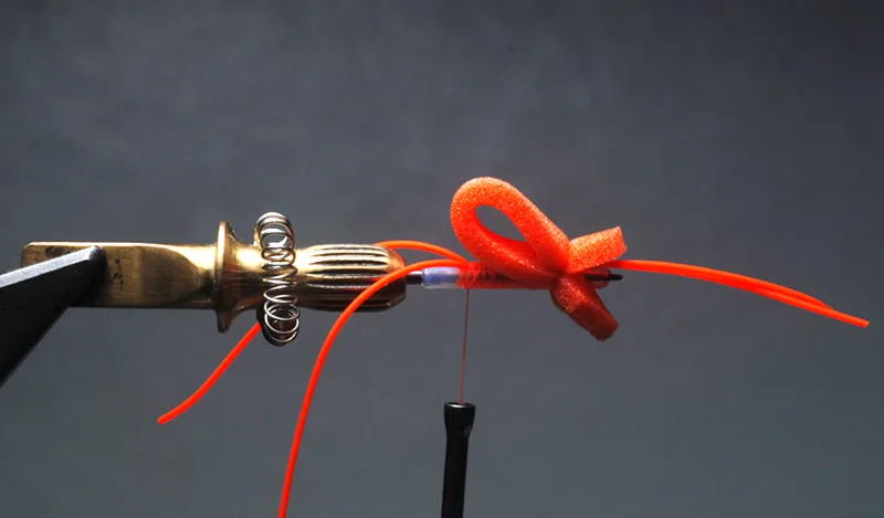 With the thread positioned on the rear part of the tube, let the foam fold back again.