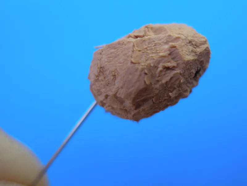Use a knife to cut a piece of cork with the proportion of a real beetle body. Choose an appropriate hook size to match the piece of cork.