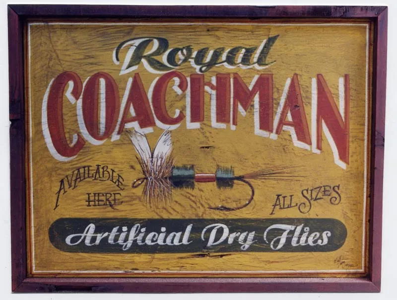 Zudweg creates advertising for classic flies using the same painting techniques that were used in the era these classics were first made popular. His unique aging methods make them appear to be genuine antiques.
