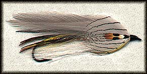 The story behind the origination of the Grey Ghost is well known. Carrie, the wife of Maine Guide Wallace Stevens, took a break from her camp chores and tied a streamer which would resemble a small baitfish. She tied a bunch of white bucktail under the hook, and two olive-grey saddle hackles on top of the hook, then took her creation to the Upper Dam pool, where she promptly hooked a 6 lb, 13 oz brook trout. She entered this fish into a contest which was being held by Field And Stream, winning second prize, and receiving a flood or orders for her new pattern. She found herself in the flytying business.