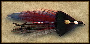 The Grey Ghost evolved a bit from the simple pattern which she caught the prize-winning brookie on, and she continued to create other patterns...some of which caught fish, others of which caught fishermen! Her commercial pattern trademark was a head that featured a band of a contrasting color thread. Black heads typically featured a red band, while red heads featured a black band. She also tied her streamers in a unique way for the time, by attaching the wings on the side of the hook shank, instead of the top as most streamer wings were/are attached. This became known as the "Rangeley Style".