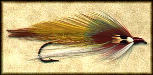 • Throat: white bucktail extending beyond the barb of the hook, then a golden pheasant crest curving upward