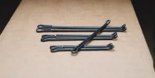 Flymen also have spines for articulated flies in lengths of 10, 25, 20 and 25 millimeters or 0.4 inches to 1 inch. These are made to make trailing, articulated bodies on flies tied on hooks. The price is 8 US$ per 24 or 8 US$ for a starter kit with six of each.